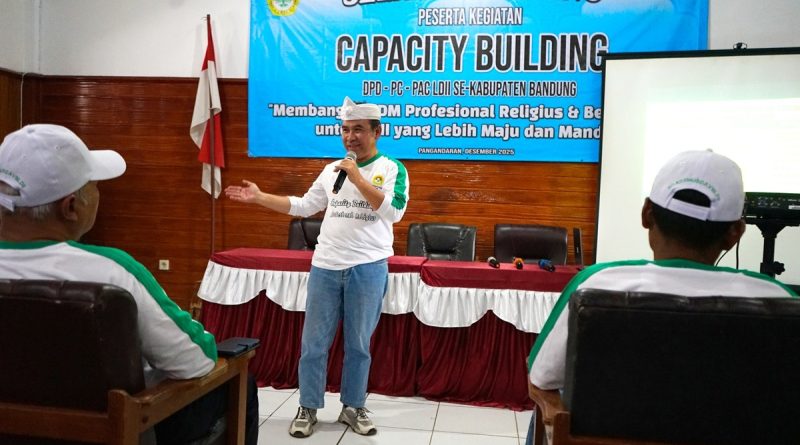 Pangandaran – Ketua DPD LDII Kabupaten Bandung, Drs. H. Didin Suyadi, menegaskan pentingnya konsolidasi internal sebagai kunci memperkuat organisasi. Pesan itu ia sampaikan saat membuka kegiatan Capacity Building pengurus DPD, PC, dan PAC LDII se-Kabupaten Bandung di Aula Hotel Mustika Ratu, Pangandaran, Sabtu (6/12/2025).