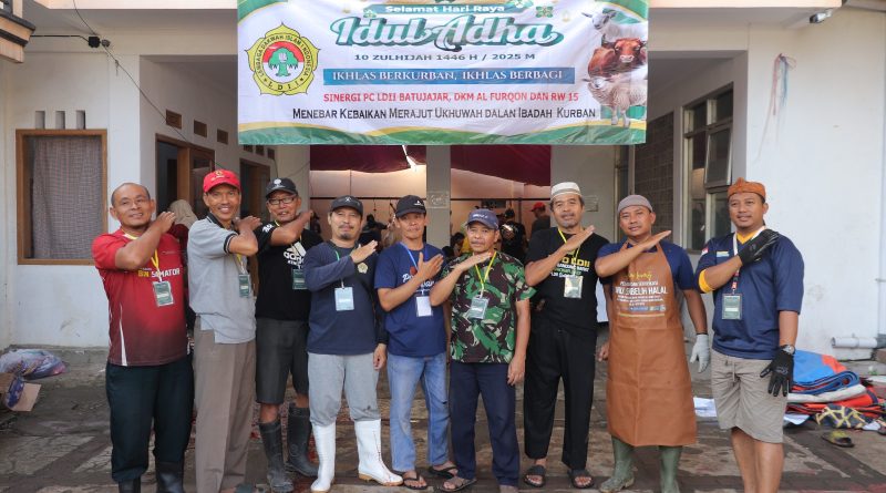 Bandung Barat (06/06) – Pimpinan Cabang (PC) LDII Kecamatan Batujajar, Kabupaten Bandung Barat, menyembelih 12 ekor hewan kurban usai salat Idul Adha di Lapangan Masjid DKM Al-Furqon, Jumat (6/6/2025). Penyembelihan ini menjadi bentuk kepedulian sosial LDII terhadap masyarakat sekitar, khususnya warga RW 15 Desa Sinarjaya.